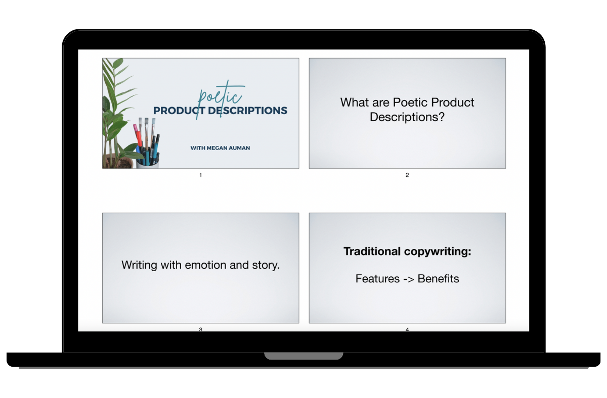 Poetic Product Descriptions is for any artist, maker, or designer looking to sell their art, craft, or handmade products online. This includes one-of-a-kind work and production.